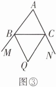 (3)如图③,$\triangle ABC的外角\angle CBM与\angle BCN的平分线交于点Q$. 请写出$\angle Q与\angle A$之间的数量关系,并说明理由.