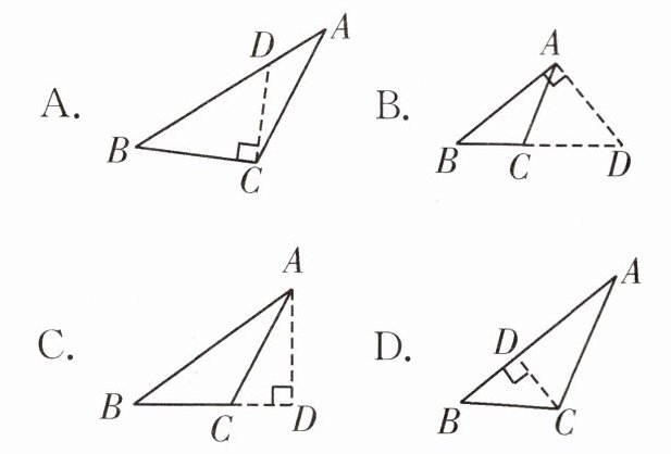 2. 在下列$\triangle ABC$中,边$BC$上的高表示正确的是(