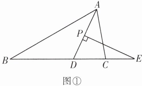 (1)如图①,$P为线段AD$上一点,过点$P作PE\perp AD交线段BC的延长线于点E$.