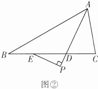 (2)如图②,$P在线段AD$的延长线上,过点$P作PE\perp AD交直线BC于点E$,请直接写出$\angle PED与\angle B$,$\angle C$的数量关系.