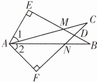 5. 如图,∠E= ∠F= 90°,∠B= ∠C,BE= CF,给出下列结论:①∠1= ∠2;②AE= AF;③△ACN≌△ABM;④CD= DN. 其中正确的结论有