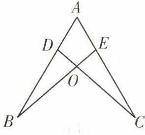 1. 如图,点D,E分别在线段AB,AC上,CD与BE相交于O点,已知AB= AC,现添加以下条件仍不能判定△ABE≌△ACD的是 (
