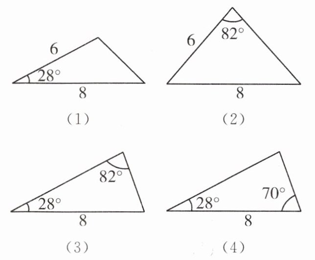 4. 根据图中所给条件,能够判定全等的两个三角形是 (