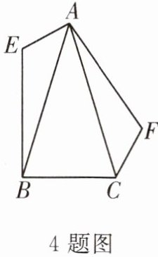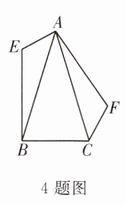 4. 如图,在 $ \triangle ABC $ 中,$ AB = AC $,$ AE = CF $,$ BE = AF $,则 $ \angle E = $