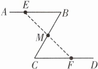 如图,公园有一条 “Z” 字形道路 $AB - BC - CD$,其中 $AB // CD$,在 $E$,$M$,$F$ 处各有一个小石凳,且 $BE = CF$,$M$ 为 $BC$ 的中点,连接 $EM$,$MF$。