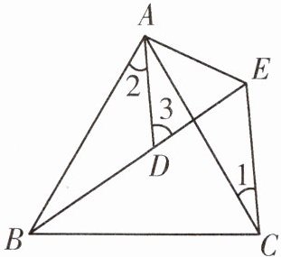 8. 如图,$AB = AC$,$AD = AE$,$\angle BAC = \angle DAE$,点$B$,$D$,$E$在同一直线上. 若$\angle 1 = 25^{\circ}$,$\angle 2 = 35^{\circ}$,则$\angle 3$的度数是(