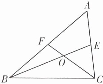 5. 如图,已知在$ \triangle ABC $中,$ CF $,$ BE $分别是边 $ AB $,$ AC $上的中线,若$ AE= 2 $,$ AF= 3 $,且$ \triangle ABC $的周长为 $ 15 $,求 $ BC $的长。