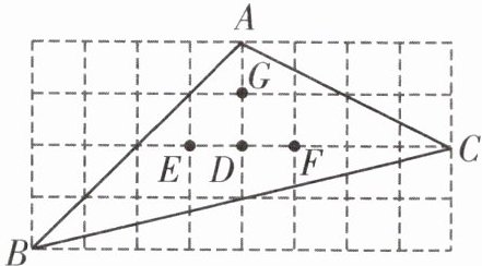 1. 如图所示,网格由边长相同的小正方形组成,点 $ A $,$ B $,$ C $,$ D $,$ E $,$ F $,$ G $ 均在小正方形的顶点上,则 $ \triangle ABC $ 的重心是(