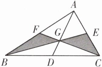 2. 如图,$ G $ 为 $ \triangle ABC $ 三边中线 $ AD $,$ BE $,$ CF $ 的交点,$ S_{\triangle ABC}= 12\mathrm{cm}^2 $,则阴影部分的面积为(