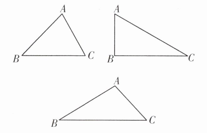 4. 在下列三角形中,分别画出边 $ AB $ 上的高。