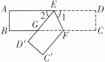 1. 如图,小明在课余时间把一张长方形纸片$ABCD沿EF$折叠,$\angle 1 = 65^{\circ}$,则$\angle 2 = $