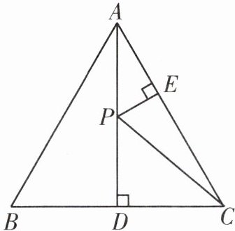 3. 如图,在$\triangle ABC$中,$AB = AC$,$\angle B = 60^{\circ}$,$AD \perp BC于点D$,$P是AD$上的一个动点,$PE \perp AC于点E$,连接$CP$。若$AD = 6$,则$PC + PE$的最小值是(
