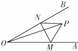 4. 如图,点$P是\angle AOB$内任意一点,$\angle AOB = 30^{\circ}$,$OP = 8$,点$M和点N分别是射线OA和射线OB$上的动点,则$\triangle PMN$周长的最小值为(