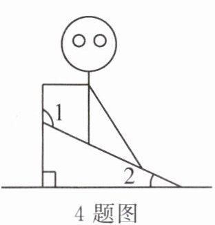 4. 体育课上的侧压腿动作可以抽象为几何图形,如图所示. 若 $\angle 1 = 115^{\circ}$,则 $\angle 2$ 的度数为