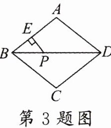 3. (3分)如图,$P是菱形ABCD的对角线BD$上的一点,$PE\perp AB于点E$,若$PE= 4cm$,则点$P到边BC$的距离为