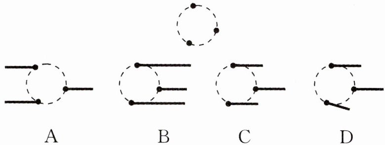 13. (抚顺东洲区二模) 三根等高的木杆竖直立在平地上,其俯视图如图所示,在某一时刻三根木杆在太阳光下的影子合理的是(