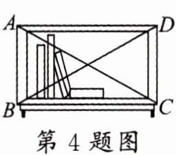 4. (6分)新情境 生产生活 如图,为了检查矩形书架ABCD的侧边是否与上、下边都垂直,工人师傅在检测四边形ABCD是平行四边形的基础上用一根绳子比较其对角线AC,BD的长度,若二者长度相等,则该书架的侧边与上、下边都垂直,其中的数学原理是:①