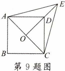 9. (青岛中考)如图,$O$ 为正方形 $ABCD$ 的对角线 $AC$ 的中点,$\triangle ACE$ 为等边三角形,若 $AB = 2$,则 $OE$ 的长度为 (