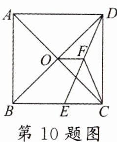 10. (锦州七中期中)如图,在正方形 $ABCD$ 中,对角线 $AC$,$BD$ 相交于点 $O$,$E$ 为 $BC$ 上的一点,$CE = 7$,$F$ 为 $DE$ 的中点,若 $\triangle CEF$ 的周长为 32,则 $OF$ 的长为