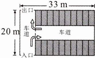 如图是某矩形停车场的平面示意图,其外围的长为 $ 33 m $,宽为 $ 20 m $,其内车道的宽度都相等。若停车位的总占地面积为 $ 510 m^{2} $,求车道的宽度。