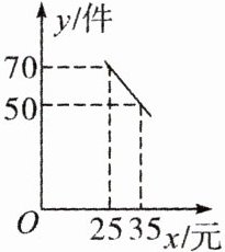 (1)设y与x之间的函数表达式为y=kx+b(k≠0),则{25k+b=70,35k+b=50,解得{k=-2,b=120,
