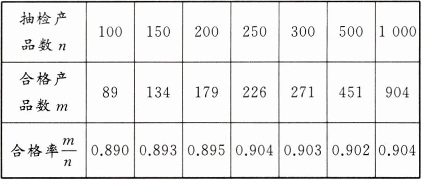 4. (5分)(沈阳辽中区期末)质检部门对某批产品的质量进行随机抽检,结果如表所示,在这批产品中任取一件,恰好是合格产品的概率约是