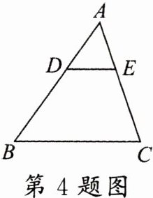 4.(3分)(2023·吉林)如图,在$\triangle ABC$中,点$ D 在边 AB $上,过点$ D 作 DE // BC 交 AC 于点 E $.若$ AD = 2 $,$ BD = 3 $,则$\frac{AE}{AC}$的值为(