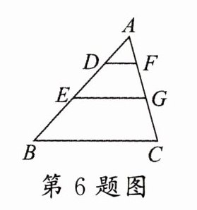 6.(4分)如图,在$\triangle ABC$中,点$ D $,$ E 在边 AB $上,点$ F $,$ G 在边 AC $上,且$ DF // EG // BC $,若$ AD:DE:EB = 2:3:4 $,$ FG = 6 $,则$ AC = $