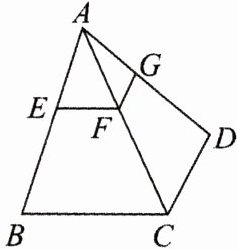 7.(10分)如图,在四边形$ ABCD $中,点$ E $,$ F $,$ G 分别在边 AB $、对角线$ AC 和边 AD $上,且$ EF // BC $,$ FG // CD $,若$ AE = 6 $,$ AB = 14 $,$ AG = 4.5 $,求$ GD $的长.