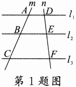 1.(3分)如图,直线$ l_1 // l_2 // l_3 $,分别交直线$ m $,$ n 于点 A $,$ B $,$ C 和点 D $,$ E $,$ F $,则下列式子不一定成立的是(