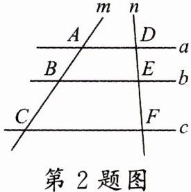 2.(6分)如图,直线$ a // b // c $,分别交直线$ m $,$ n 于点 A $,$ B $,$ C 和点 D $,$ E $,$ F $,