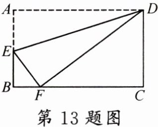 13. 如图, 点 $ E $ 在矩形 $ ABCD $ 的 $ AB $ 边上, 将 $ \triangle ADE $ 沿 $ DE $ 翻折, 点 $ A $ 恰好落在 $ BC $ 边上的点 $ F $ 处, 若 $ CD = 3BF $, $ BE = 4 $, 则 $ AD = $