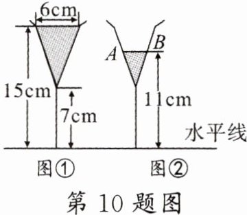 10. (葫芦岛连山区期末) 图①是装了液体的高脚杯的示意图 (数据如图),用去一部分液体后如图②所示,此时液面 $ AB $ 为(