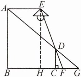 13. (18 分) 新情境 生产生活 小明同学利用数学课所学的知识测量学校门口的路灯的主杆的高度。如图,$ AB $ 为路灯的主杆,$ AE $ 为路灯的悬臂,$ CD $ 是长为 $ 1.8 \, m $ 的标杆。已知路灯的悬臂 $ AE $ 与地面 $ BG $ 平行,当标杆 $ CD $ 竖立于地面时,主杆的顶端 $ A $、标杆的顶端 $ D $ 和地面上的一点 $ G $ 在同一条直线上,此时小明发现路灯的顶端 $ E $、标杆的顶端 $ D $ 和地面上的另一点 $ F $ 也在同一条直线上 (路灯主杆的底端 $ B $、标杆的底端 $ C $ 和地面上的点 $ F $,$ G $ 在同一水平线上),这时小明测得 $ FG $ 的长为 $ 1.5 \, m $,路灯正下方的点 $ H $ 到路灯主杆的底端 $ B $ 的距离为 $ 3 \, m $,求路灯的主杆 $ AB $ 的高度。