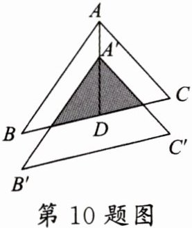 10. 如图,将$\triangle ABC沿BC边上的中线AD平移到\triangle A'B'C'$的位置. 已知$\triangle ABC$的面积为 16,阴影部分三角形的面积为 9,若$AA' = 1$,则$A'D$的长为 (