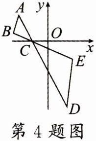 4. (5 分)如图,在平面直角坐标系中, $ \triangle ABC $ 和 $ \triangle DEC $ 是以点 $ C $ 为位似中心的位似图形,且 $ \triangle ABC $ 和 $ \triangle DEC $ 的周长之比为 $ 2:5 $,若点 $ A $ 的坐标为 $ (-4,3) $,点 $ C $ 的坐标为 $ (-2,0) $,则点 $ D $ 的坐标为