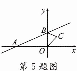 5. (5 分)【易错】如图,直线 $ y= \frac{1}{2}x+1 $ 与 $ x $ 轴、$ y $ 轴分别交于 $ A $, $ B $ 两点, $ \triangle B'O'C' $ 与 $ \triangle BOC $ 是以点 $ A $ 为位似中心的位似图形,且相似比为 $ 3:1 $,则点 $ B' $ 的坐标为
