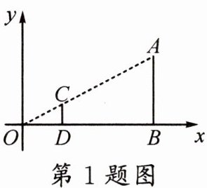 1. (4 分)(辽宁省实验学校中考模拟)如图,在直角坐标系中,有两点 $ A(6,3) $, $ B(6,0) $,以原点 $ O $ 为位似中心,相似比为 $ \frac{1}{3} $,在第一象限内把线段 $ AB $ 缩小后得到线段 $ CD $,则点 $ C $ 的坐标为(