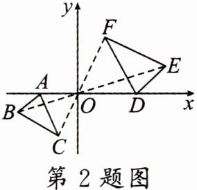 2. (6 分)如图,在平面直角坐标系中,以原点 $ O $ 为位似中心将 $ \triangle ABC $ 放大得到 $ \triangle DEF $,若点 $ A(-4,0) $,点 $ B(-6,-2) $,点 $ D(6,0) $,点 $ F(3,6) $,则相似比为