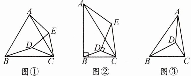 (3) 拓展应用:如图③,D是△ABC内的一点,∠BAD= ∠CBD= 30°,∠BDC= 90°,AB= 4,AC= 2$\sqrt{3}$,请直接写出AD的长。