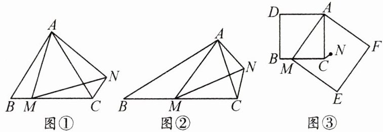 【问题发现】如图①,在等边△ABC中,M是BC边上的任意一点,连接AM,以AM为边作等边△AMN,连接CN,则∠ABC和∠ACN的数量关系为