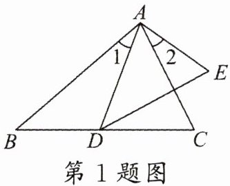 1. 如图,已知$∠1= ∠2$,那么添加下列任何一个条件:①$∠B= ∠ADE$;②$∠C= ∠E$;③$\frac{AB}{AD}= \frac{AC}{AE}$;④$\frac{AC}{AE}= \frac{BC}{DE}$.其中能判定$△ABC∽△ADE$的有(