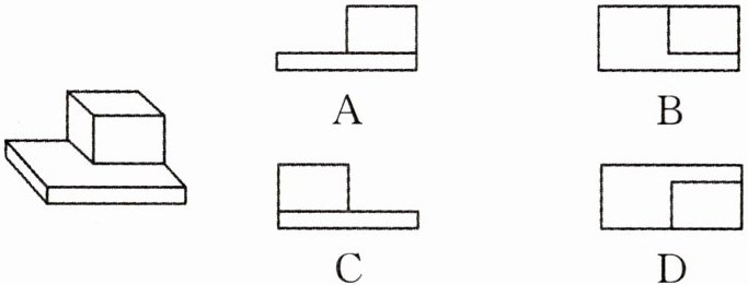 俯视图:一个大长方形右上角缺失一个小长方形(或表述为两个相邻长方形,左边大右边小,右边小长方形位于大长方形右上角 )。