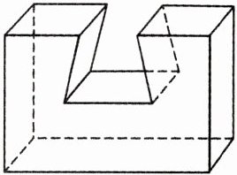 主视图:一个长方形,中间有一条竖向的虚线(表示凹槽不可见部分的轮廓线);