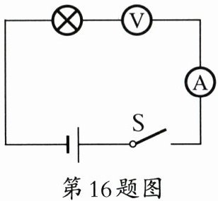 16. 在如图所示的电路中,电源的电压为 3 V,当闭合开关 S 后,电压表的示数为