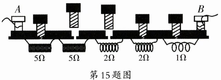 15. 如图所示的是插入式电阻箱的结构示意图,它的最大电阻值是