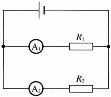 20. 如图所示,电源电压保持不变,电阻 $ R_1 = 20 \Omega $,电流表 $ A_1 $的示数为 0.4 A,$ A_2 $的示数为 0.8 A。求: