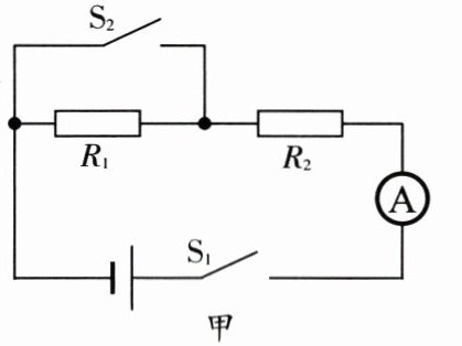 (2) 闭合开关 $ S_1 $,要使开关 $ S_2 $断开时电阻 $ R_1 $两端的电压变为 16 V,另一个电阻 $ R_2 $的阻值为多少?