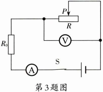 3. 如图所示,电源电压保持不变,开关S闭合,将滑片P向右移动,关于电流表和电压表示数变化情况,以下说法正确的是(