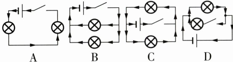 4. 如图所示的四个电路图中,各开关都闭合后,电流方向正确的是 (